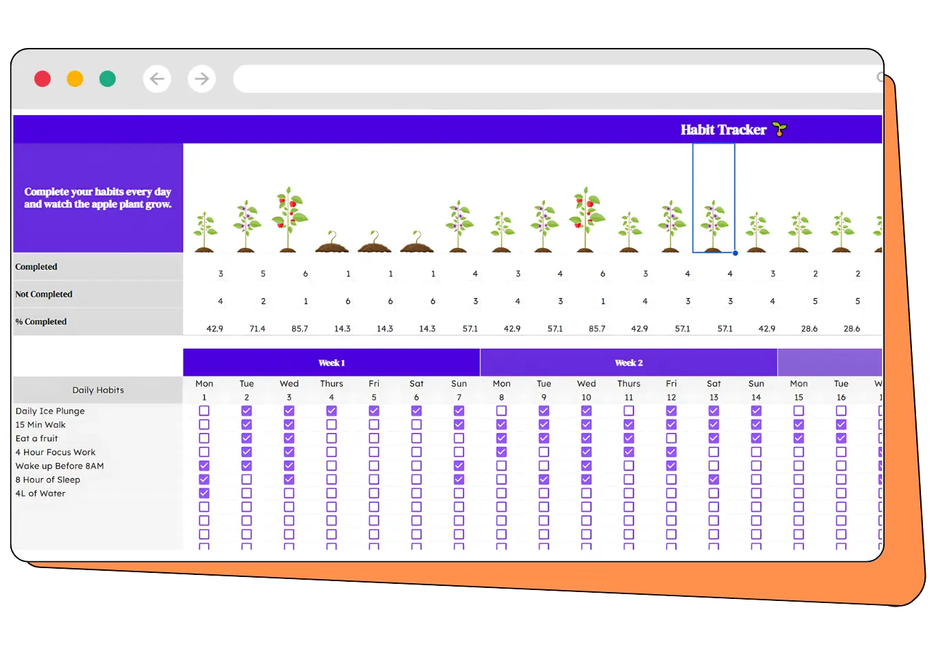 Watch your apple plant grow as you complete over 75% of your habits daily.